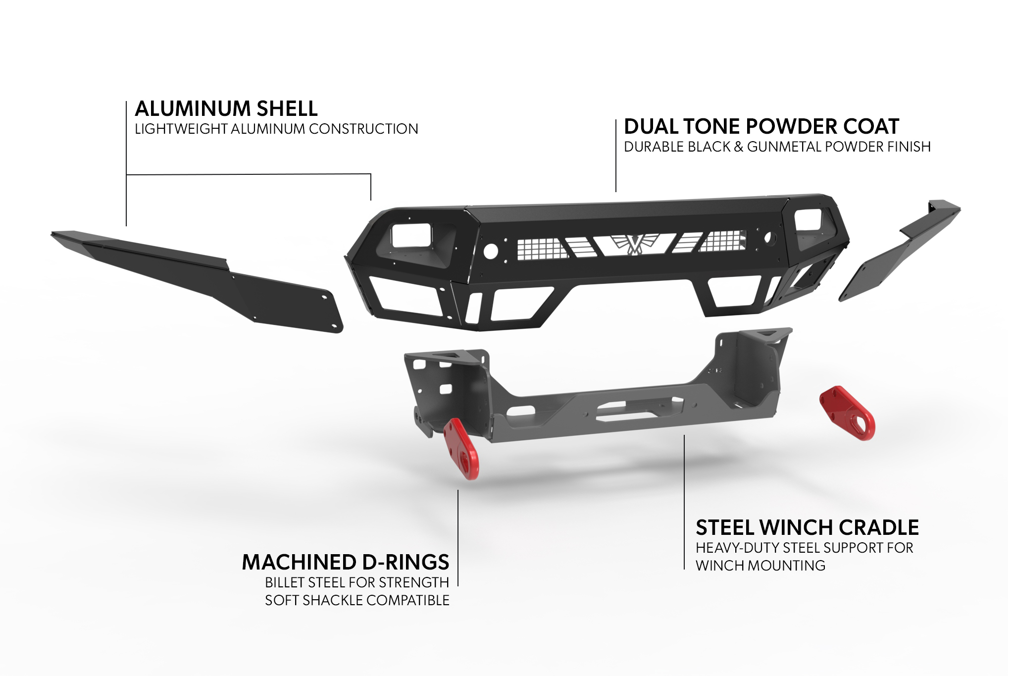 Our Blitz Evolution Series winch bumper for the Colorado (excluding ZR2 & Bison) is engineered with a lightweight 3-piece aluminum outer shell built on a high-strength steel support structure. This gives you the best of both worlds: weight savings/corrosion resistance, along with strong recovery points. This made-in-the-USA bumper features an integrated 20" lightbar mount, 3/4" recovery tabs, plus provisions for industry-standard winches. The bumper is coated in a two-stage satin-textured black powder coat with silver-textured accents over a durable zinc primer finish.