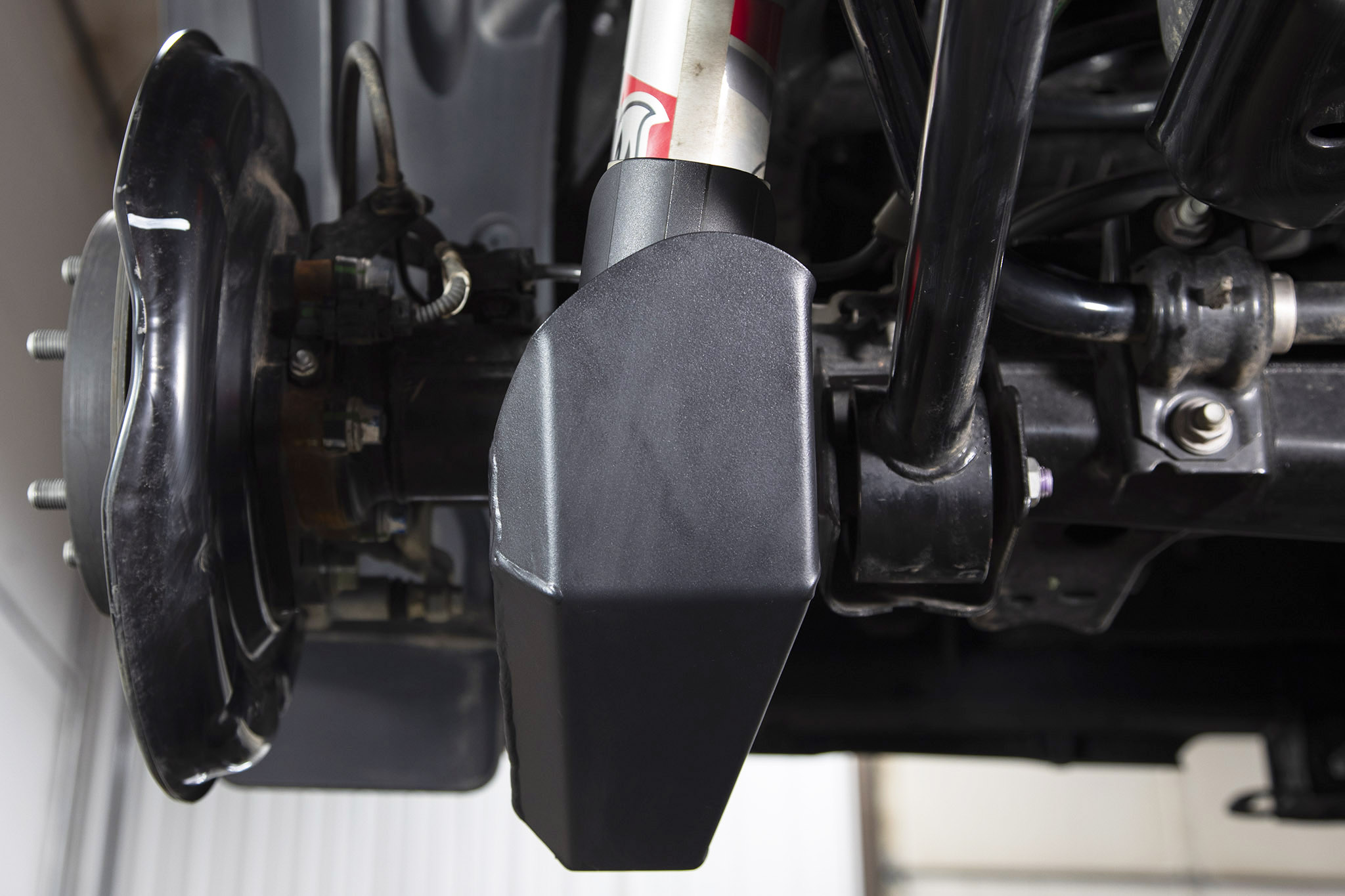 Designed to protect the vulnerable ends of your rear shocks from trail damage. Comes coated with a 2 stage satin textured black powdercoat over durable zinc primer finish.